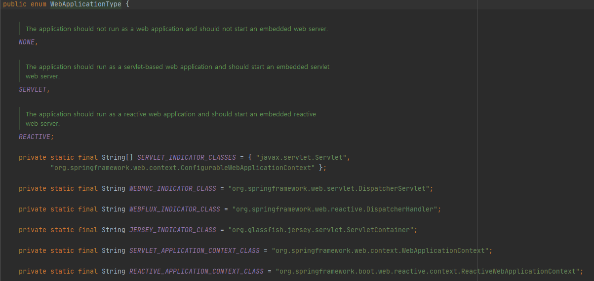앞서 언급한 것처럼 ApplicationContext 구성에 WebApplicationType 이 사용된다.