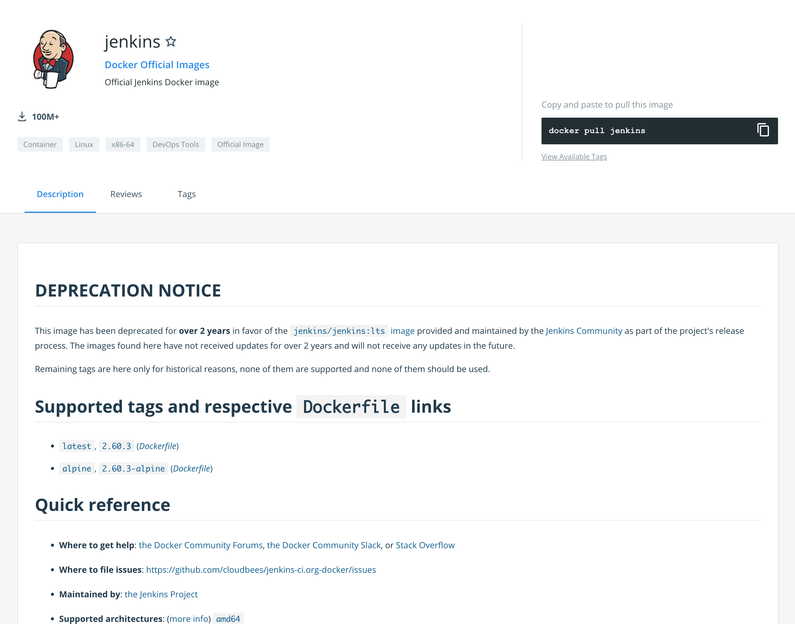 $ docker pull jenkins/jenkins