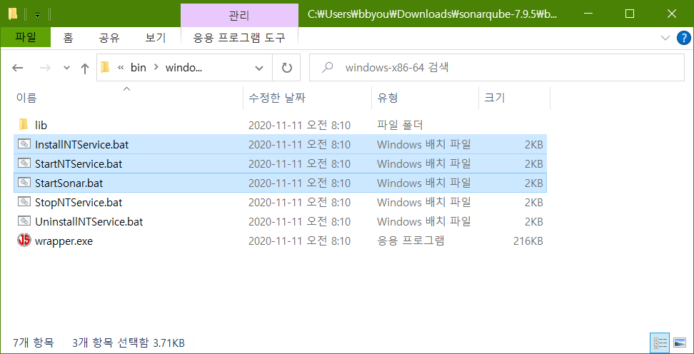 InstallNTService.bat > StartNTService.bat > StartSonar.bat 순서로 실행한다.